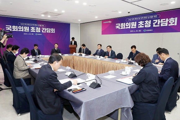 시는 25일 국회 본관에서 국회의원들과 함께 '국비 지원 건의 사업 및 현안 논의'를 위한 조찬 간담회를 가졌다.