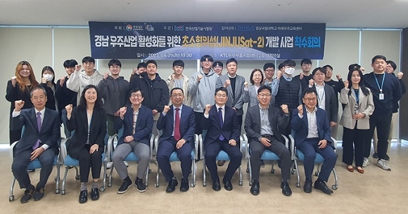 경남 진주시는 25일 한국산업기술시험원(KTL) 우주부품시험센터에서 사업 참여기관 관계자들이 참석한 가운데 '2단계 초소형위성(JINJUSat-2) 개발사업' 착수회의를 가졌다.