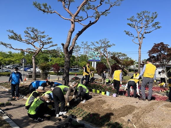 경남 진주시는 26일 진주실내체육관 일원에서 그린협약 체결 혁신도시 이전 공공기관 직원 60명과 '2023 진주아시아역도선수권대회' 손님맞이를 위해 봄꽃 화단조성 활동을 실시했다.