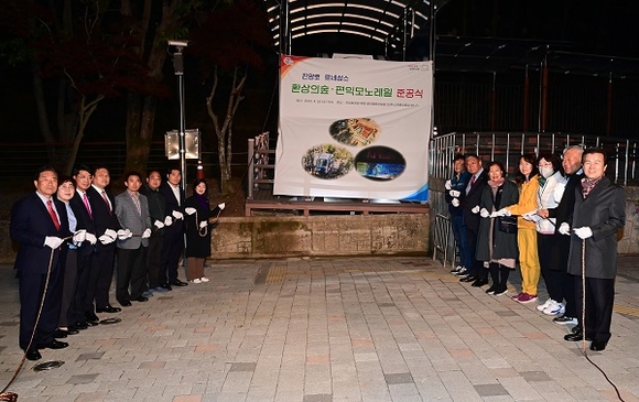 경남 진주시는 26일 진양호공원 후문 꿈키움동산 일원에서 '진양호 하모 놀이숲', '진양호 환상의 숲', '진양호 편익 모노레일' 준공식을 가졌다.