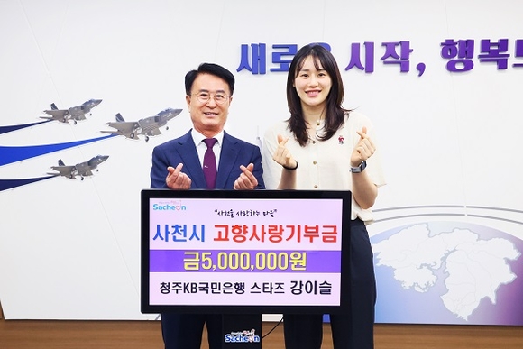 사천 동서동 출신인 강이슬 선수는 지난 1일 시청을 직접 방문해 고향사랑기부금 최고액인 500만원을 기탁했다.