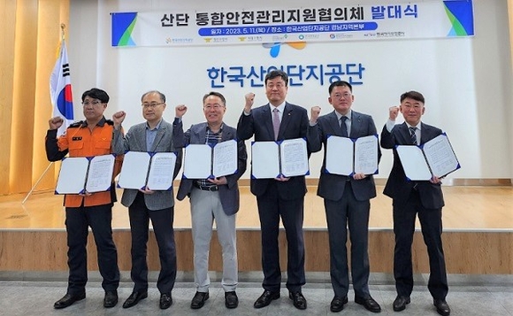 한국산업단지공단 경남지역본부는 11일 본부 청사에서 관내 7개 안전 유관기관과 함께 '경남 통합안전관리지원협의체(경남 산안협)' 발대식을 가졌다.