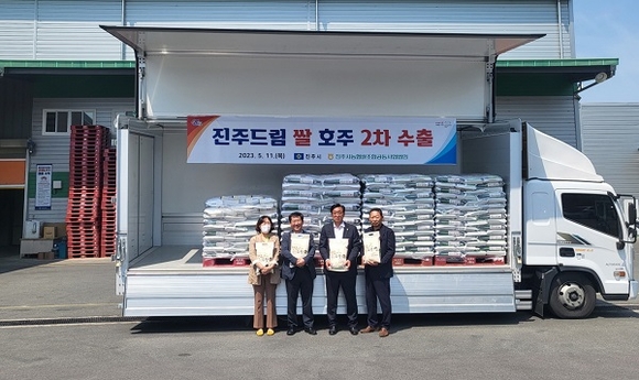 경남 진주시는 지난 11일 사봉면에 위치한 미곡종합처리장에서 진주시 농산물유통과 김상문 과장과 농협쌀 조합 공동사업법인 박윤철 대표, 진양농협 손종태 조합장 등 수출 관계자가 참석한 가운데 진주드림 쌀 5톤을 호주로 수출하는 선적식을 가졌다.
