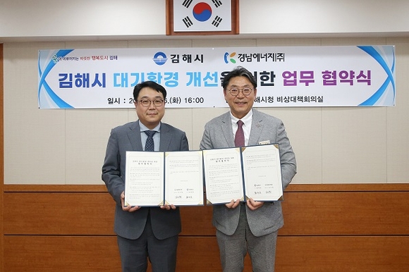 경남 김해시는 지난 16일 오후 시청에서 도시가스(LNG) 공급사인 경남에너지(주)와 대기환경 개선을 위한 업무협약을 체결했다.