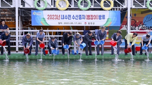 경남 합천군은 지난 17일 수산자원 회복과 어업인 소득증대를 위해 김윤철 군수, 김해식 농업기술센터 소장, 봉산 및 대병 어업인 등 30여 명이 참석한 가운데 합천호 대병면 일대에 뱀장어 치어 약 8500여 마리를 방류했다.