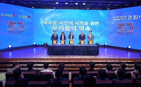 창립 53주년 기념식은 축전 영상, 생일케익 이벤트, 은행장 창립기념사, 회장 축사, 장학금·기부금 전달, 직원 시상, 바른 기업문화를 만들어 가는 다짐의 순으로 진행됐다.