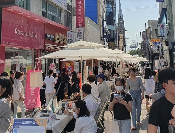 이날 로데오거리 상점가 메인 거리에는 수제간식, 주전부리, 착즙주스 등 다채로운 먹거리를 맛볼 수 있는 식품매대가 설치됐고 핸드메이드 소품, 잡화, 공예품 등 35개 플리마켓 참가팀이 다양한 상품으로 거리를 메웠다. 이와 함께 청년들의 끼와 솜씨를 마음껏 발휘할 수 있는 별도의 음악 버스킹존도 마련돼 행사장은 젊음의 활기로 가득 찼다.