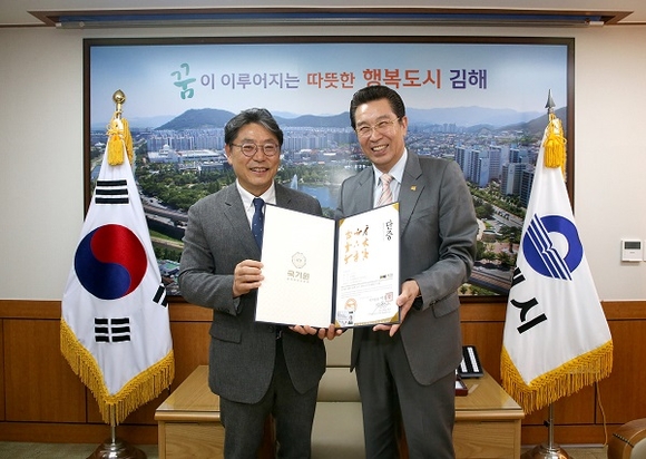 경남 김해시는 홍태용 시장이 지난 7일 시장실에서 국기원의 '태권도 명예단증(4단)'을 받았다고 8일 밝혔다.