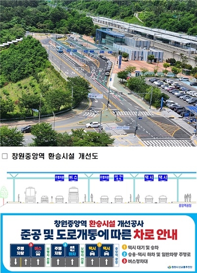 2021년 '국토교통부 광역버스 회차 및 환승시설 개선공사 공모사업'에 선정돼 금번 시행한 '창원중앙역 환승시설 개선공사'는 창원중앙역을 이용하는 승객을 태우기 위한 택시와 버스, 그리고 승용차들이 한데 뒤섞여 교통이 마비되는 현상을 해소하기 위해 △총사업비 26억 7천만원(국비 6억 3천만원, 도비 7억 3500만원, 시비 13억 500만원)을 투입해 △도로확장 6→8차로 △택시대기 53면을 조성했으며, 창원중앙역 이용객들의 우천 시 보행환경 개선을 위한 △캐노피(L=150m)를 설치했다.