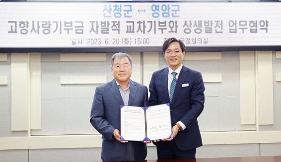 경남 산청군과 전남 영암군이 고향사랑기부제의 성공적인 정착을 위해 힘을 모으기로 했다.