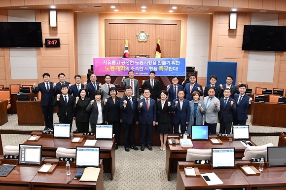 또한 시의회는 김유상 의원이 대표발의한 '자유롭게 공정한 노동시장을 만들기 위한 노동개혁 촉구 결의안'을 채택했다.