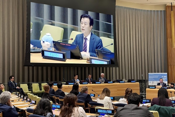 진주시는 27일 뉴욕 유엔(United Nation) 본부에서 열린 UN 중소기업의 날(UN MSME Day) 행사에 조규일 시장이 '대한민국 기업가정신의 수도, 진주'를 주제로 기조연설을 했다고 밝혔다.