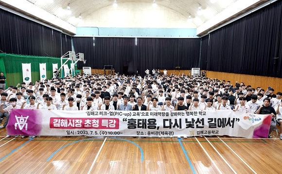 홍태용 김해시장은 5일 김해고등학교 체육관에서 '홍태용, 다시 낯선 길에서'라는 주제로 전체 학년을 대상으로 특강했다.
