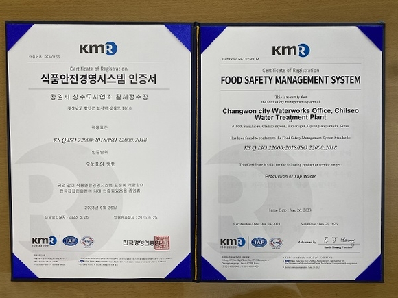 국제표준화기구(ISO)에서 제정한 ISO 22000(식품안전경영시스템)은 식품의 제조, 가공, 유통, 보존, 판매단계 등 전 과정의 위해요소를 사전에 차단하고 체계적으로 관리하는 국제표준규격으로 창원시 최대 수돗물 공급처인 칠서정수장은 올해 1월부터 수돗물 생산 전 과정에 인증을 추진하여 심사를 통해 지난 6월 26일부터 승인을 완료했다.