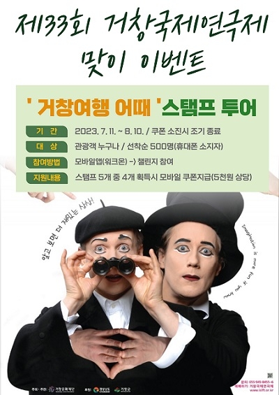 한편 거창군 공식 인스타그램에서는 '제33회 거창국제연극제 맞이 참여 행사'가 11일부터 8월 10일까지 진행되며, 군 공식 인스타그램을 구독하고 제33회 거창국제연극제 홍보 게시물 속 초성퀴즈의 정답을 댓글로 달면 추첨을 통해 상품을 지급할 예정이다.