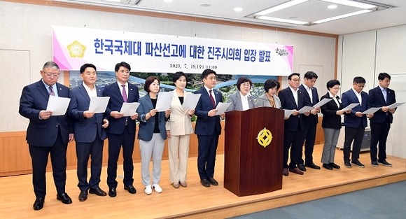 지난 12일 창원지방법원이 학교법인 일선학원에 대해 파산선고를 내림에 따라 한국국제대학교가 폐교 절차를 밟게 되자 사태의 심각성을 엄중히 인식하고 대책을 마련해야 한다는 진주시의회의 입장문이 19일 나왔다.