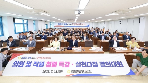 한편 본회의 개회 전 시의원 45명과 의회사무국 직원 등 110명은 의회 대회의실에서 '이해충돌방지법 등에 대한 올바른 이해와 직무 관련 부패 방지'를 주제로 청렴 특강을 듣고 부패와 부정행위를 방지하는 결의대회를 했다.