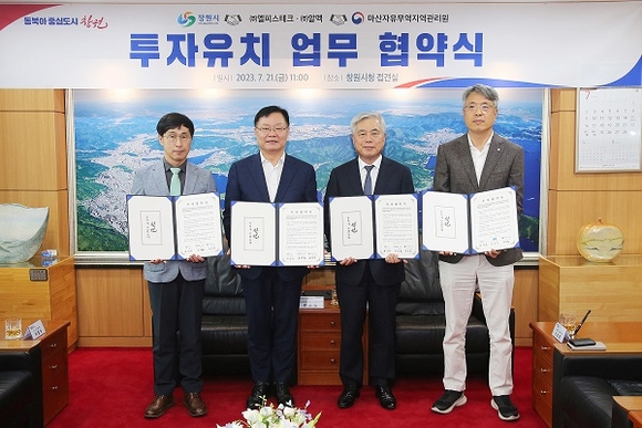 경남 창원시는 21일 시청 접견실에서 마산자유무역지역에 입주예정인 ㈜엘피스테크, ㈜알멕과 투자금액 342억 원 및 신규고용 84명 규모의 투자협약을 체결했다.