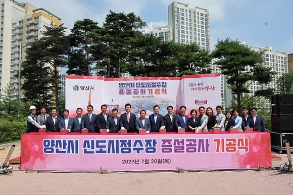 경남 양산시는 지난 20일 2030년 양산도시기본계획 인구 50만명 대비 수도시설 확보를 위한 '양산시 신도시정수장 증설공사' 기공식을 열고 본격적인 공사에 들어간다고 밝혔다.