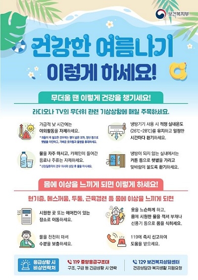 이도완 도 복지보건국장은 “올해 기상청에 따르면 폭염일수가 증가 추세이고 최고기온도 평년보다 높을 전망이어서 피해 발생이 우려되는 상황”이라며 “폭염피해 예방을 위해, 무더운 시간대에는 야외활동을 자제하고 충분한 휴식과 수분을 섭취하는 등 건강수칙을 준수해 주실 것”을 당부했다.