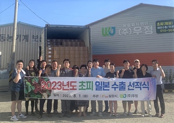 경남 밀양시는 1일 상동면 농업회사법인 ㈜우정에서 생산 농가와 시 직원 등 10명이 참석한 가운데 초피 일본 수출 선적식을 가졌다.