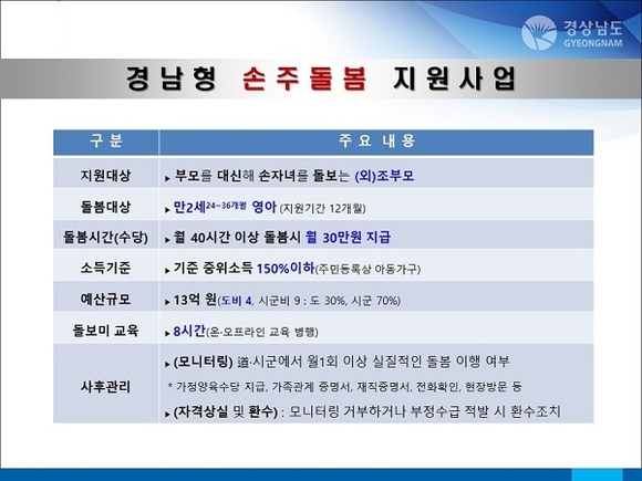 ◇가정양육 환경 조성 위한 '경남형 손주돌봄 지원사업' 추진