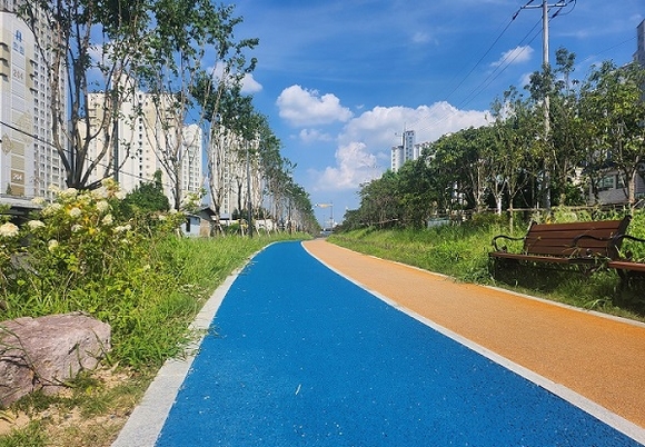 폐선 그린라인 및 블루라인 사업은 불법 경작지로 이용되거나 방치돼 있던 진영리 580m, 여래리 450m 폐선철로 구간에 탄소저감수종 식재, 산책로 조성, 투수블록 설치 등으로 그린 인프라를 조성해 주민들의 쉼터 역할뿐만 아니라 폭염, 홍수 등 기후변화 대응 효과도 거두도록 했다.