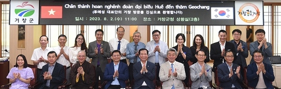 경남 거창군은 지난 2일 베트남 후에성 부위원장 일행이 제33회 거창국제연극제에 초청된 베트남 공연팀 '후에 황실예술단' 저녁 공연을 앞두고 군청을 방문해 상호교류를 통한 우애를 다졌다고 밝혔다.