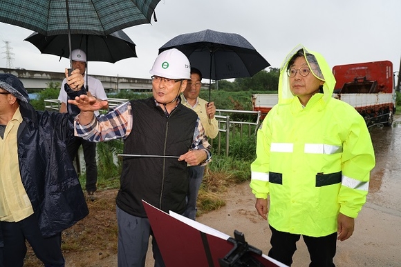 홍 시장은 이날 오후 2시부터 5시 30분까지 한림면 사이언스파크 일반산업단지 토목공사 현장, 진영읍 주천강 생태하천 복원사업과 청천배수장 배수펌프 설치공사 현장, 조만2지구(조만강) 하천재해예방사업 현장과 도심하천 산책로 통제상태를 점검했다.