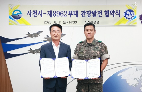 경남 사천시는 11일 시청 시장실에서 제8962부대 용호여단과 관광 발전 협약을 체결했다.