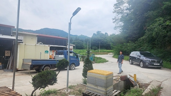 경남 함양군이 야간보행 취약지역에 태양광 충전식 LED조명을 설치해 주민들의 야간보행 안전을 확보하고 범죄예방 인프라를 구축하고 있다.