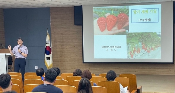 경남 밀양시는 수출 딸기 품종 다변화와 품질 경쟁력 향상을 위해 24일 농업기술센터 대강당에서 유망 품종인 '알타킹' 재배 기술 교육을 가졌다.