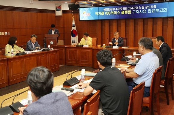 경남 밀양시는 시청 소회의실에서 박일호 시장 주재로 행정안전부 주민주도형 지역균형 뉴딜 공모사업에 선정된 '직거래 VOD커머스 플랫폼 구축 사업' 완료보고회를 가졌다고 25일 밝혔다.