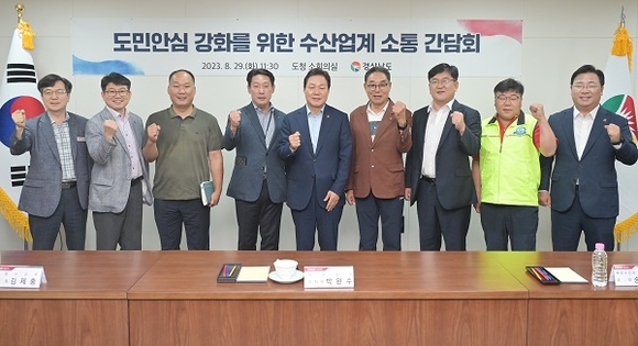 박완수 경남도지사는 29일 도청 소회의실에서 후쿠시마 오염수 방류에 따른 수산업계의 어려움과 현안 타개를 위해 소통간담회를 가졌다.