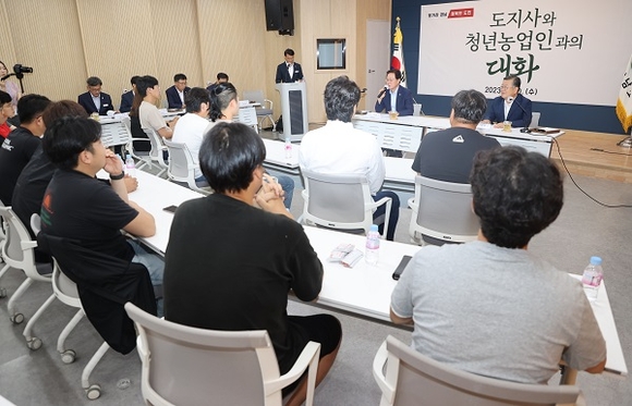 박완수 경남도지사는 30일 오후 밀양 삼랑진읍에 위치한 경남스마트팜혁신밸리 지원센터 대강당에서 청년농업인 40여 명과 청년농업인 육성방안에 대해 소통하는 시간을 가졌다.