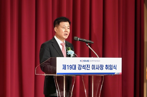 강석진 중소벤처기업진흥공단 제19대 이사장이 1일 오전 경남 진주 중진공 본사에서 취임식을 갖고 본격적인 업무에 들어갔다.