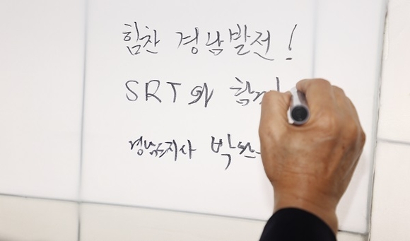 박 도지사는 유등에 '힘찬 경남발전! SRT와 함께'라고 문구를 적고, 오전 7시 8분에 출발하는 열차 앞에서 행사 참석자들과 함께 SRT 운행 개시를 알리는 손피켓 홍보를 실시했다. 이어 SRT에 탑승해 창원중앙역까지 이동하며 열차 이용에 불편함이 없는지 살펴봤다.