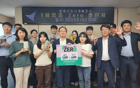 김해시도시개발공사는 지난 6일 일상생활 속에서 1회용품 절감 실천을 약속하는 '1회용품 제로 챌린지'에 동참했다.