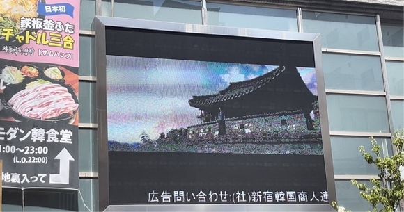 진주시를 알리고 있는 신주쿠 상인연합회에서 운영하고 있는 대형 전광판은 신오쿠보역에서 코리아타운으로 이어지는 중심대로 및 신주쿠와 신오쿠보를 잇는 길목에 있는 한류문화의 중심지에 위치, 유동인구가 많아 홍보 효과가 클 것으로 기대되는 곳이다.