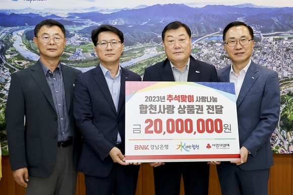 경남은행은 지난 14일 합천군청을 방문해 이웃돕기 성품 합천사랑상품권 2천만원을 기탁했다.