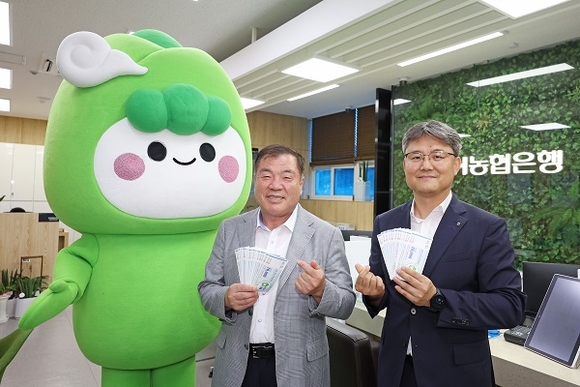 이승화 산청군수가 15일 판매에 돌입한 '산청-진주 상생상품권'의 첫 구매자로 나섰다. 이 군수는 NH농협은행 산청군청출장소에서 상품권을 구매하며 “상생상품권이 동의보감촌 일원에서 열리고 있는 산청엑스포와 10월에 열리는 진주남강유등축제에 많이 사용돼 시너지 효과를 거두길 바란다”고 말했다. (사진=산청군 제공)