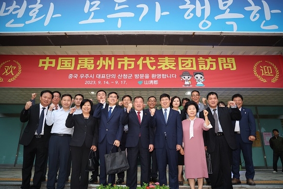 지난 14일 산청군을 방문한 우주시 천토우 시장 등 8명의 대표단은 군청 군정회의실에서 환영간담회를 가졌다.