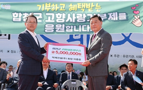 덕재건설 이종운 회장은 “고향사랑기부제 참여로 고향인 합천군 발전에 도움이 된 것 같아 기쁘다”며 “다른 출향인분들도 합천군 고향사랑기부제에 동참해 고향 사랑을 이어나가기를 바란다”고 전했다.