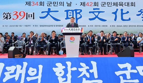 경남 합천의 대표 축제인 제39회 대야문화제·제34회 군민의날·제42회 군민체육대회가 지난 15일부터 '2023희망 행복합천'이라는 주제로 일해공원 야외공연장 및 합천읍 일원에서 열렸으며, 18일 폐막식과 축하공연으로 총천연색의 화려한 대미를 장식했다.