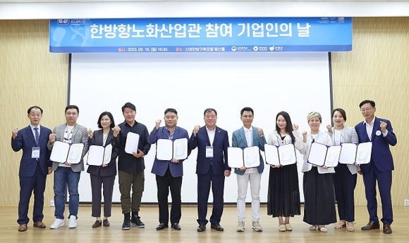 2023산청세계전통의약항노화엑스포조직위원회는 18일 오후 산청한방가족호텔에서 한방항노화산업관 참여 기업인의 날 행사를 가졌다.