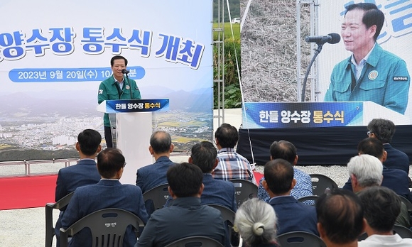 이날 통수식은 개회식을 시작으로 추진 경과보고, 기념사, 인사말, 양수장 펌프 가동 및 기념 촬영, 사업장 현장 확인 순으로 진행됐다.