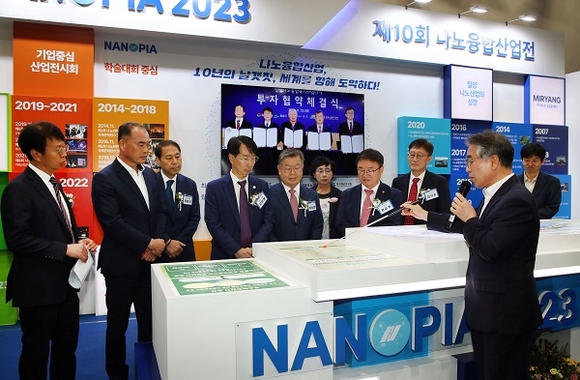 또한 “나노국가산단을 중심으로 한 나노융합클러스터 구축은 산·학·연·관이 상생협력해 대한민국 나노융합산업을 육성하고 발전시키는 원동력이 될 것”이라며 “이번 ‘나노피아 2023’은 나노산업의 미래를 볼 수 있는 좋은 기회인 만큼 지속적인 관심과 참여를 부탁드린다”고 말했다.