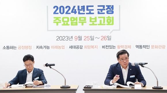 이번 보고회에서는 진병영 군수를 비롯해 서창우 부군수, 해당 국·소장, 부서장, 담당계장 등이 참석한 가운데 내년 군의 힘찬 도약을 이끌어갈 주요 업무에 대해 공유했다.