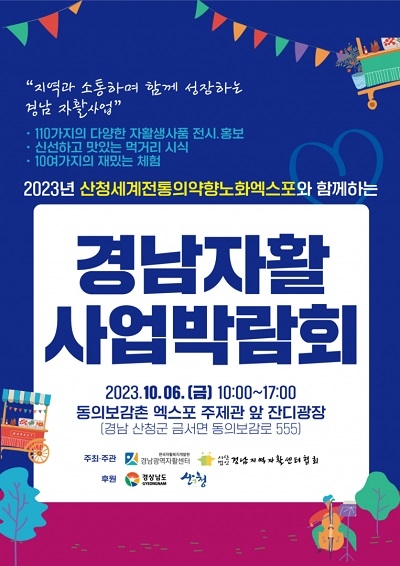 '제8회 경남자활사업박람회'가 오는 10월 6일 2023산청세계전통의약항노화엑스포가 열리고 있는 동의보감촌에서 열린다.