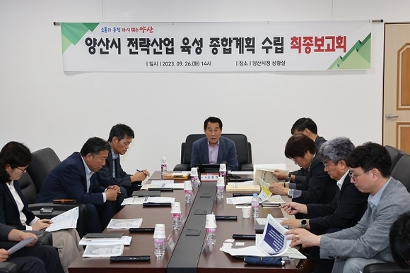 경남 양산시는 지난 26일 나동연 시장을 비롯한 시 관계자들과 산·학·연 전문가로 구성된 자문위원 등 20여 명이 참석한 가운데 양산시 전략산업 육성 종합계획 수립 최종보고회를 가졌다.